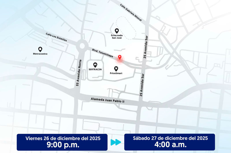Nacionales Anda anuncia restricción vehicular en bulevar Tutunichapa por reparación de fuga viernes 26, diciembre 2025 - 5:14 p. m.